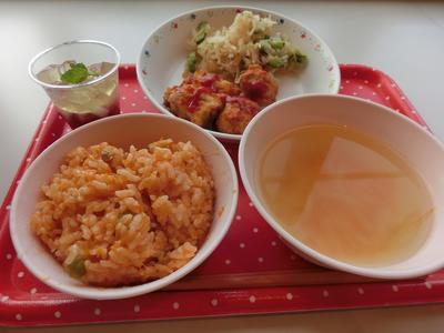 6/26(金)6月のお誕生日会ランチ⭐ 投稿: 保育士 (2020/06/27) カテゴリー: 園の様子 昨日はお誕生日会だったので、お祝いのランチ、お誕生会ランチでした メニューは チキンライス たまねぎスープ チキンナゲット アスパラの和え物 あじさいゼリー みんないいお顔で食べてくれていましたよ -