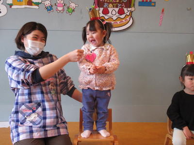 初めて園での製作をしました。一緒に花紙をくしゃくしゃしました!
