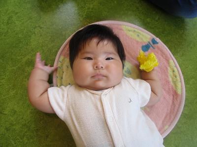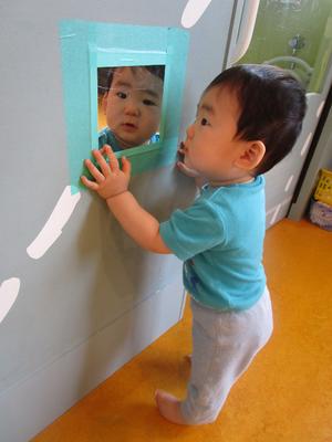 鏡越しにカメラ目線!目が合うとにこ~っと笑って遊んでいます♪