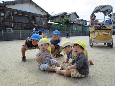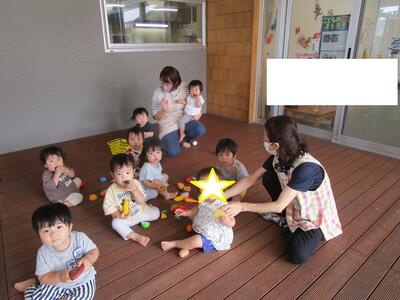 涼しくなってきて、ウッドデッキや園庭を自由に散策して楽しんでいるこども達です。