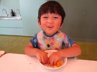 給食は、離乳食完了期に入り、スプーンや手づかみで食べれるようになってきました。
