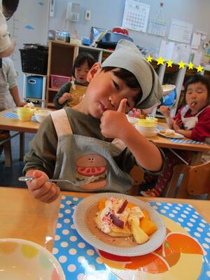 そして、気持ちのこもった世界に一つだけのパンケーキに大満足の子ども達でした