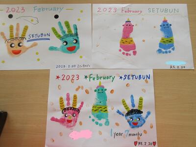 2月の子育て支援 こんな活動しています。 投稿: 保育士 (2023/02/25) カテゴリー: 園の様子 くじらわいわいひろばで人気の活動、手形・足型アート! 今月はこんな作品が出来ました。 ボール遊びの中で鬼退治も行いました。ねらいを定めて、エイッ!! 最後は押し倒しで、やつけたよ。 子育て支援 Tweet -